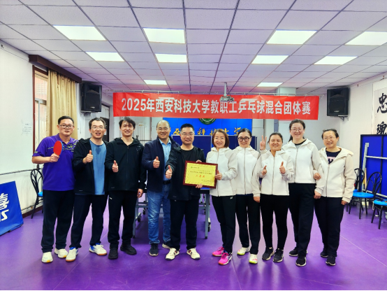 近日,2025年西安科技大学教职工乒乓球赛圆满落幕。理学院工会代表队在混合团体赛中表现突出,通过小组赛和淘汰赛,大家团结协作、奋勇拼搏,最终荣获团体第三名(二等奖)。在个人单项赛中,黄耀光一路过关斩将,最终登顶男子单打冠军宝座。葛丹、刘艳也在各自的比赛中发挥出色,分别斩获女子第四名和第七名。此次比赛,理学院代表队用汗水与热爱诠释了体育精神,表现出了较强的心理素质和精湛球技,展示了队员们的拼搏精神和团队凝聚力,为理学院赢得了荣誉。