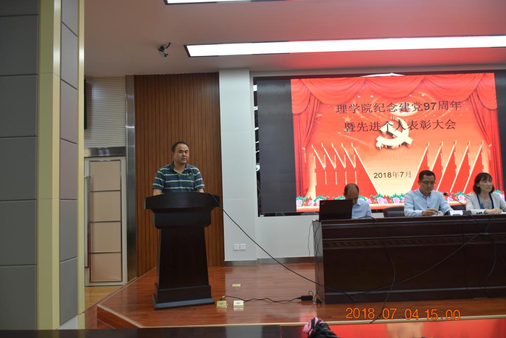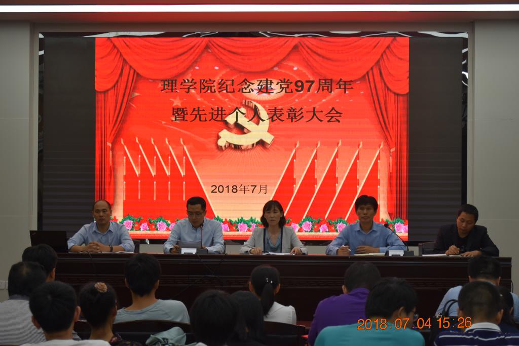 7月4日下午,理学院在雁塔校区图书馆报告厅举行庆祝建党97周年暨先进个人表彰大会。全体班子成员、师生代表140余人参加了大会,会议由院党委副书记贾哲主持。