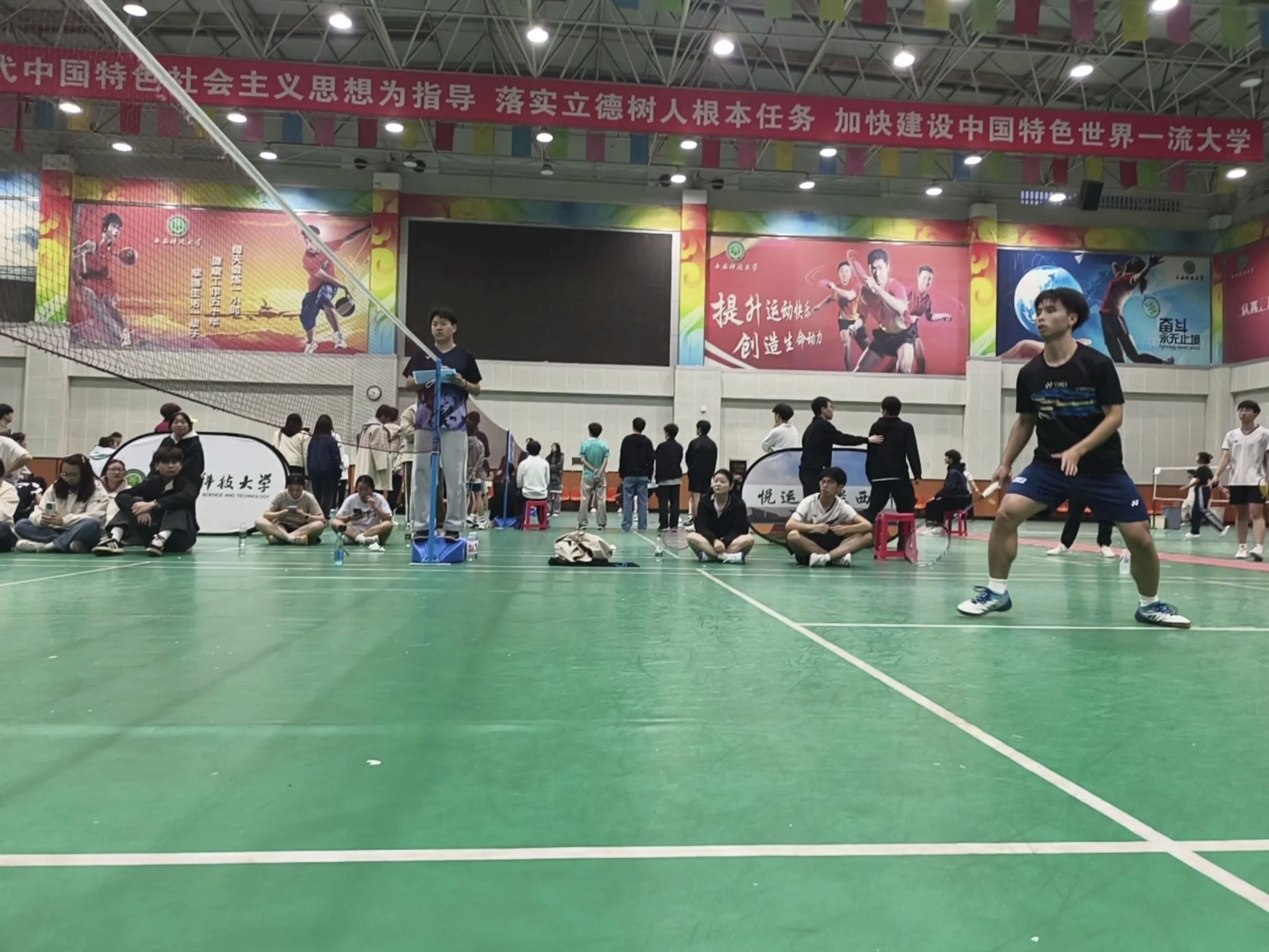 2025年10月18日,我校第七届“电控杯”暨新生杯羽毛球比赛圆满落幕。理学院代表队凭借出色的发挥与顽强的拼搏精神,取得了男子单打第一名与男子双打第三名的优异成绩,充分展现了理学健儿昂扬向上的精神风貌和卓越的竞技水平。
