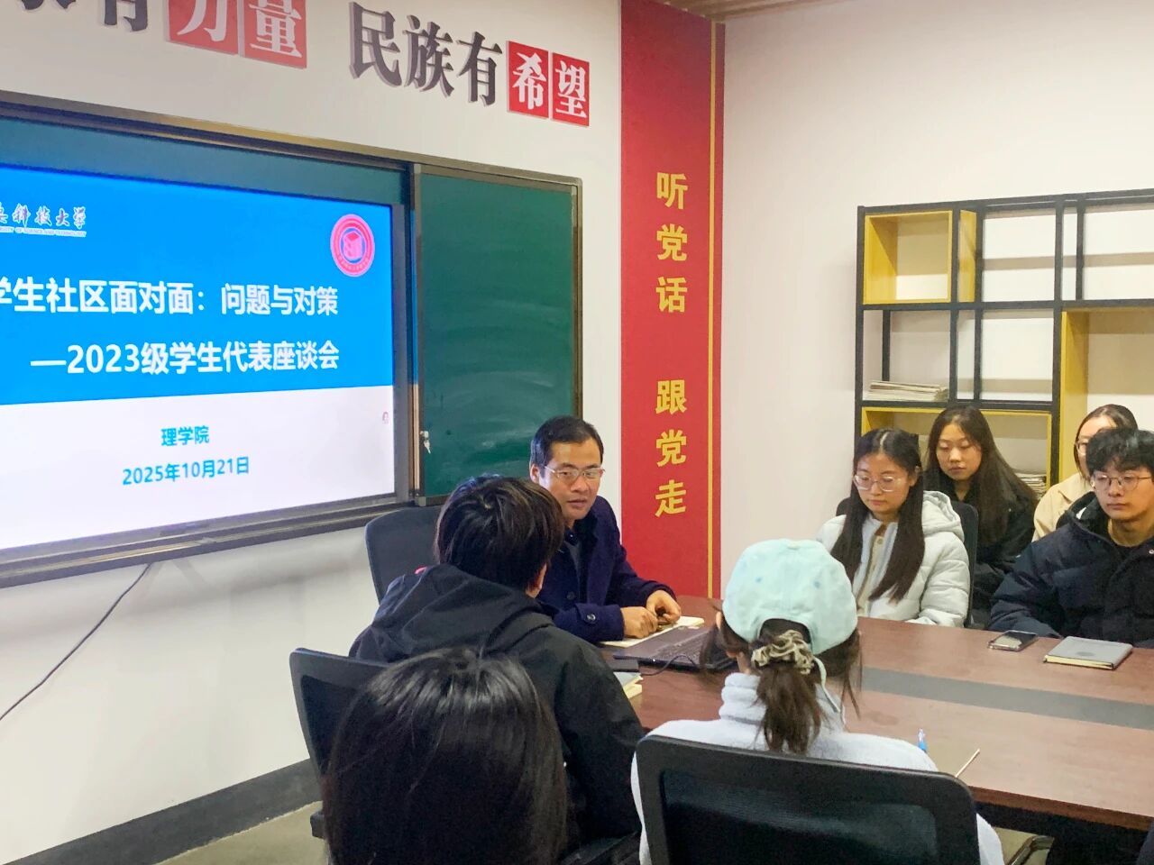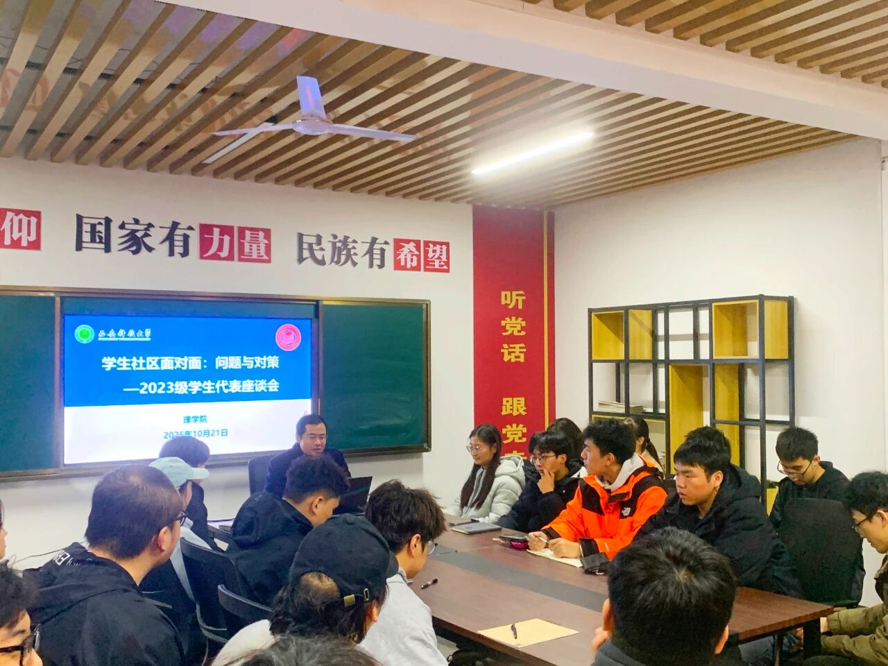 为全面了解学生开学以来的整体情况,倾听学生心声并加强引导,10月21日,理学院于“一站式”学生社区举办了2023级学生代表座谈会。活动由2023级辅导员侯斌刚主持,2023级学生代表参加。