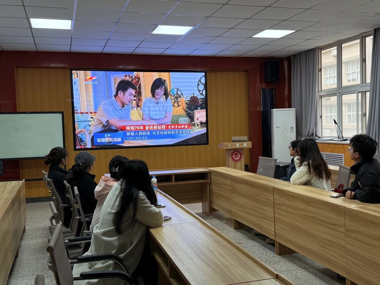 本次活动聚焦新时代党的治疆方略、中国(新疆)自由贸易试验区建设、大学生志愿服务西部计划及新疆人才引进政策等重点内容。同学们共同观看了《情暖天山》《光辉征程·何以新疆》等时政纪录片,通过生动的影像资料,深入了解了新疆维吾尔自治区成立70年来的发展成就和未来规划。