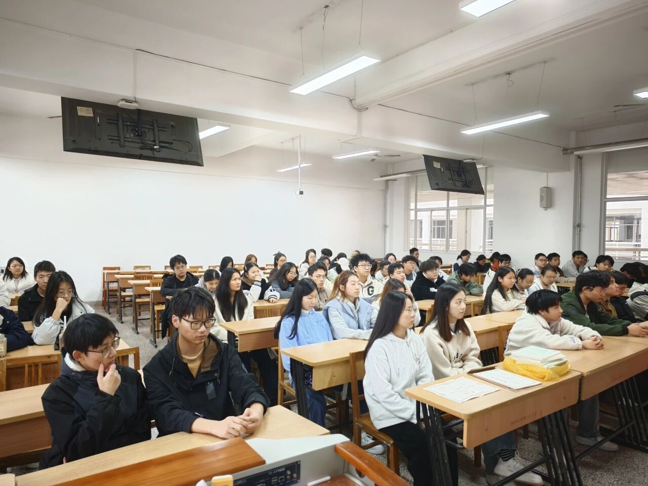 学院特邀在英语四级考试中达到优秀等级的力学2201班尤嗣懿和数学2301班廖秋凡,为同学们带来了一场备考经验分享会。他们将四级考试科学拆解为写作、听力、阅读、翻译四大模块,逐一进行精准剖析。除了分项技巧,他们还就备考时间规划、复习资料选择与考前心态调整等分享了宝贵经验,强调了坚持与平和心态的重要性。