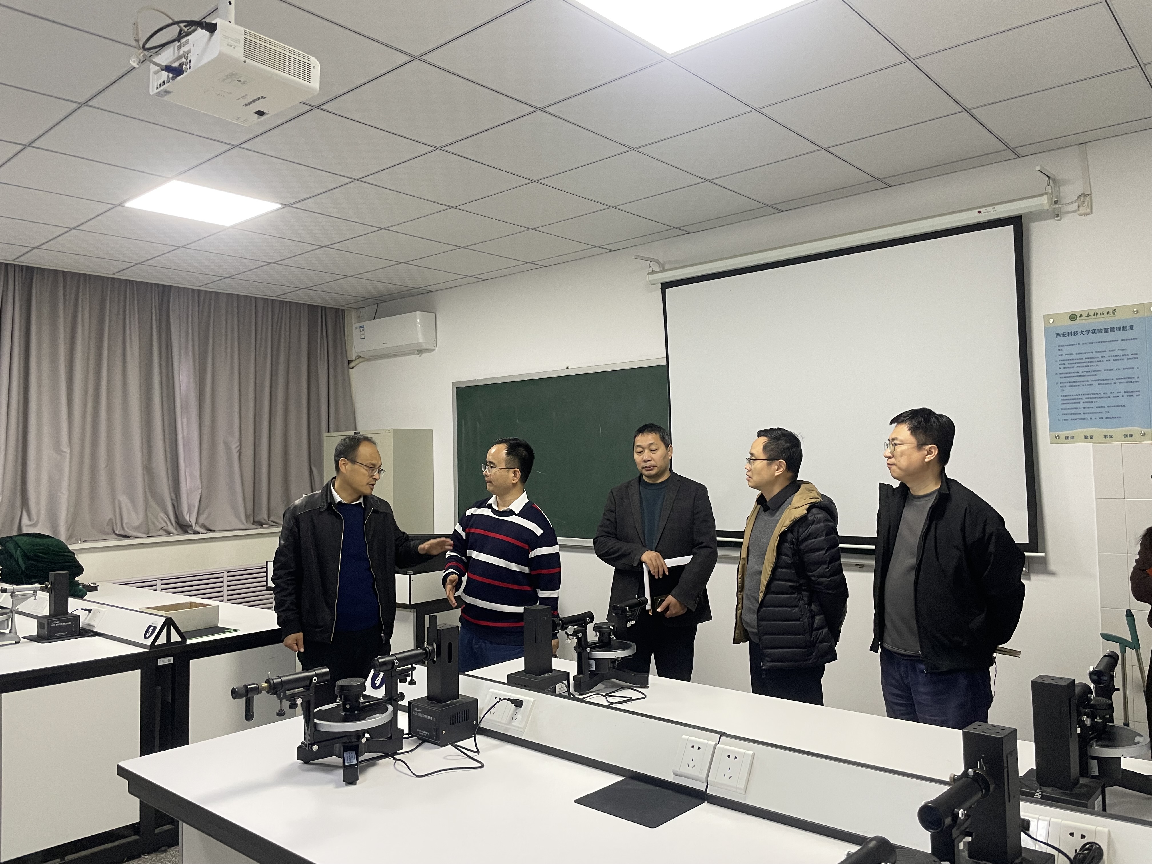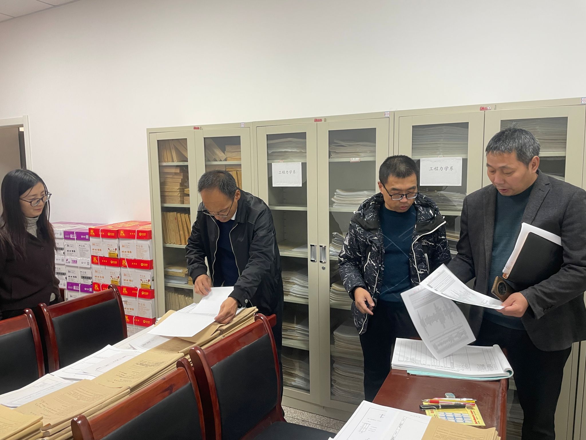 各系主任和实验室负责人汇报了审核评估整改成果资料准备进展情况。学院院长张仲华在听取了各系和实验室负责人汇报后表示:要重点展示学院在人才培养、课程思政建设等方面的特色做法,结合学院实际,做好典型案例的总结和提升,形成特色鲜明、数据翔实、案例生动的材料。学院党委书记杨勇表示:全体人员要进一步提高政治站位,强化责任担当,将整改工作与日常业务深度融合,将日常教学和实验室紧密结合。要坚持问题导向,做好日常试卷、毕业论文等归档资料整理。要深挖问题根源,精准施策,注重整改实效。要敢于亮剑,着力构建长效机制,将整改措施规范化,形成可持续的工作机制。会后学院班子成员、各系主任和实验室负责人共同检查了实验室、试卷资料室、研究生自习室,学院领导对部分场所环境卫生、门牌标语修复、试卷存放标准进行了要求,明确了任务,为扎实推进审核评估整改工作奠定了坚实基础。