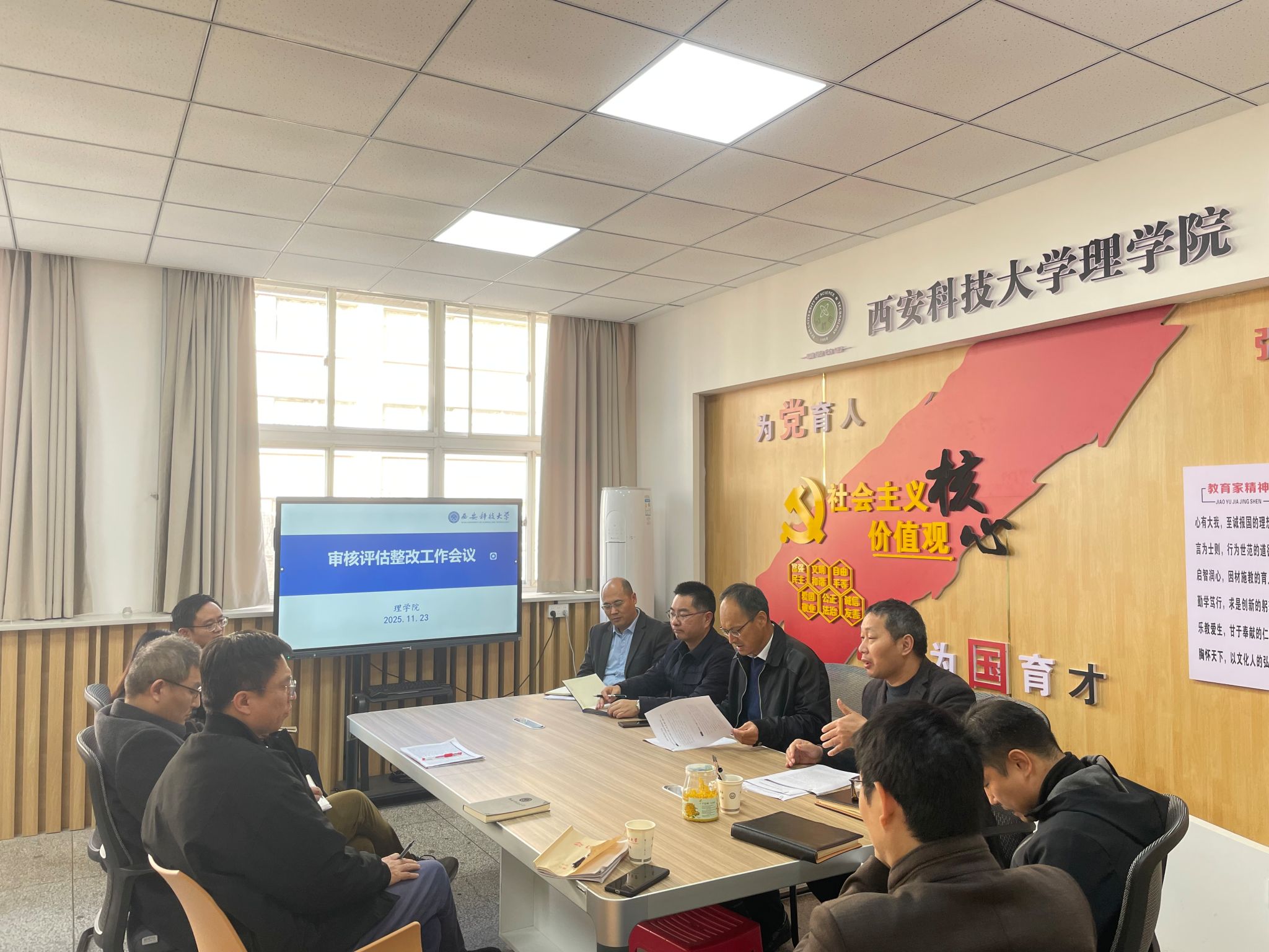 11月23日下午理学院在学院221会议室召开审核评估整改任务检查会议,各系主任和实验室负责人参加会议。