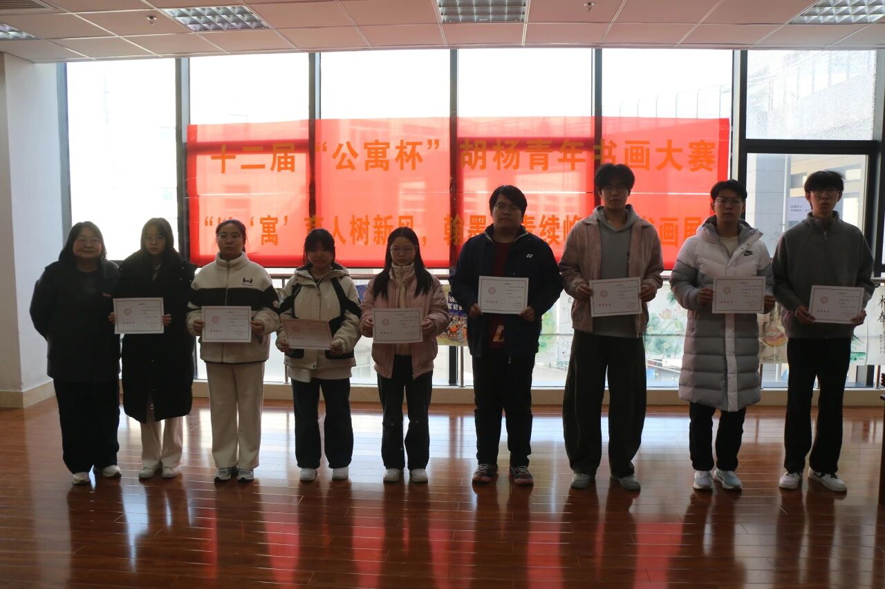 笔墨传情颂新风,丹青绘彩展峥嵘。11月25日中午,由理学院承办的西安科技大学第十二届“公寓杯”胡杨青年书画大赛颁奖典礼暨获奖作品展,在临潼校区图书馆“墨轩阁”隆重举行。后勤基建党委书记邹仁华、后勤处副处长张治红、校团委副书记孙小娜,理学院党委副书记兼国风书画协会指导教师陈伟伯,以及公寓科科长张欢、学工部心理咨询中心罗维等嘉宾出席活动,国风书画协会骨干成员与获奖选手代表共计30余人齐聚现场,共同见证赛事成果。