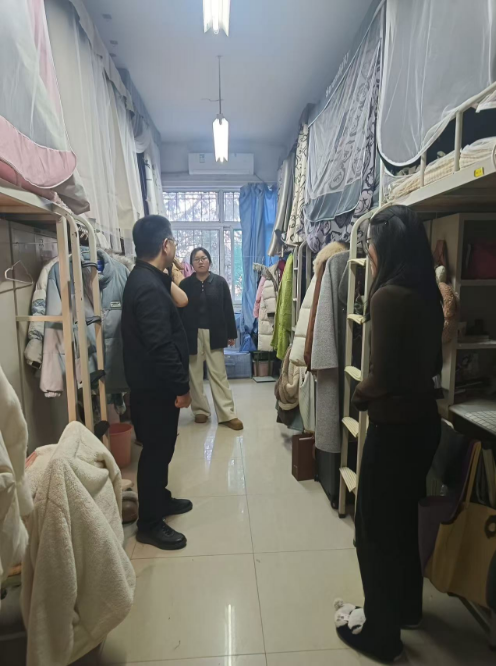 随着寒假的临近,为切实做好学生离校期间宿舍安全与卫生管理工作,1月13日,院党委副书记陈伟伯、研究生辅导员薛一丹带队深入学生宿舍,组织开展离校前安全卫生专项检查,全面排查隐患,确保假期宿舍环境整洁、安全有序。