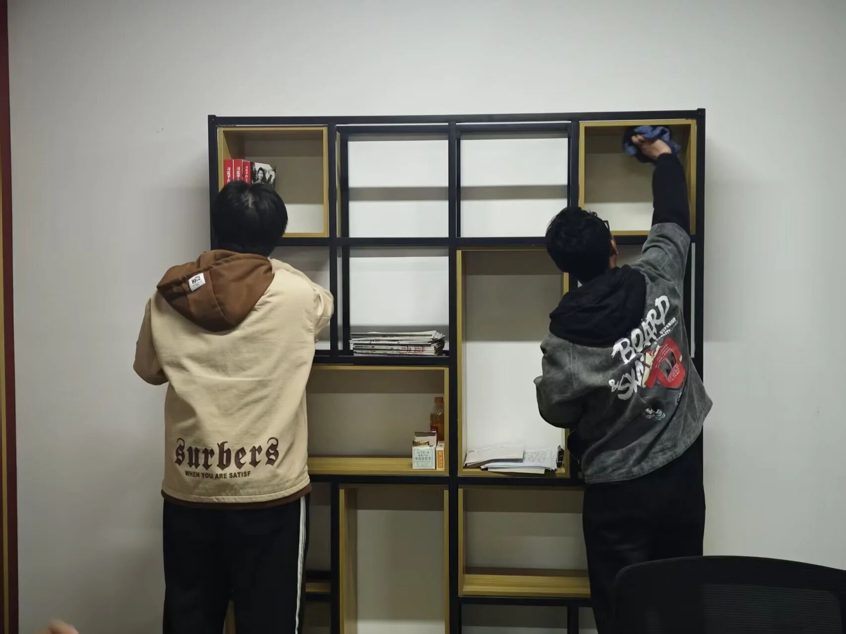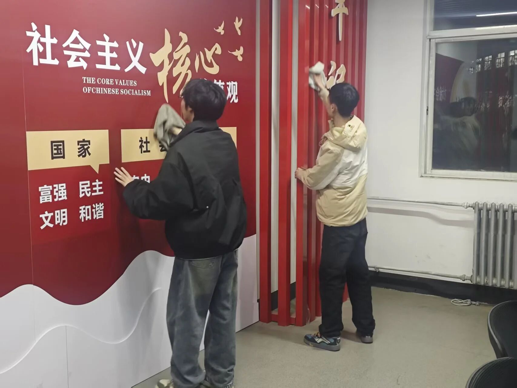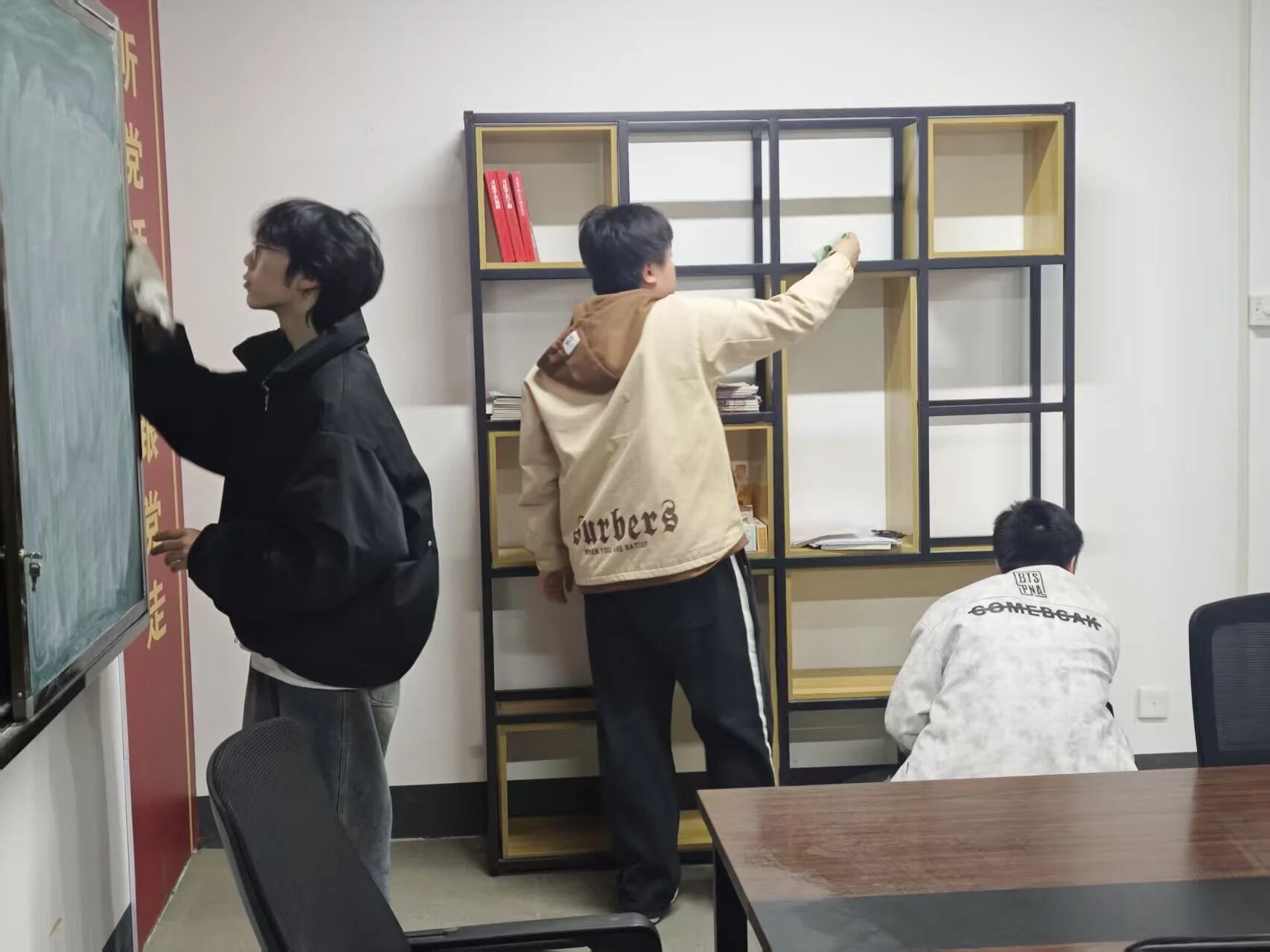 活动当天,同学们早早集合,手持扫帚、抹布等清洁工具,以饱满的热情投入到清扫工作中。大家分工明确、配合默契,认真擦拭桌椅书架,细致清理地面垃圾,对桌面、窗台、地面等每一个角落都进行了全面打扫。同学们不怕脏、不怕累,干劲十足,现场气氛热烈而有序。经过大家的共同努力,社区环境焕然一新、整洁有序,呈现出更加温馨舒适的面貌。