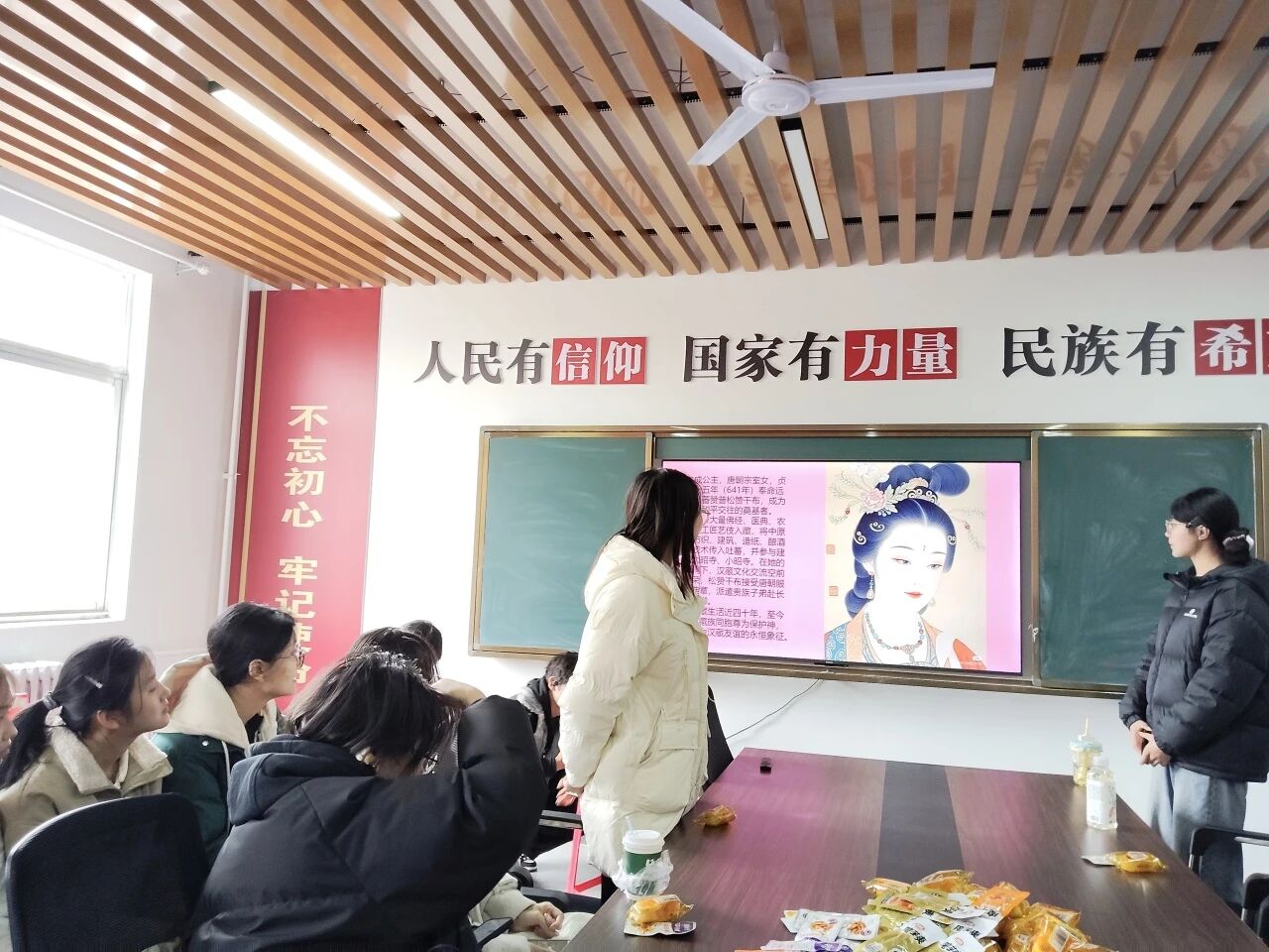 本次活动围绕“互动、表达、共创”展开,设计了“夸夸接力”、“她力量·猜猜她是谁”两个互动游戏环节,以及手工折纸体验。在“夸夸接力”中,同学们轮流分享自己身边女性的闪光点,真诚的赞美引发阵阵共鸣;在“猜猜她是谁”环节中,大家通过关键词与肢体语言猜出屠呦呦、张桂梅、谷爱凌等杰出女性,既活跃了气氛,也传递了榜样力量。手工区则准备了彩纸与鲜花,同学们折叠出爱心、千纸鹤等作品,完成后还可领取一束鲜花作为节日纪念。