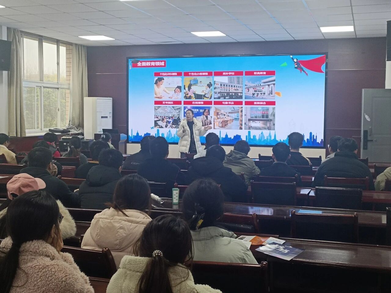 首先,负责人聚焦教育行业现状与企业核心竞争力,系统介绍了学大教育在个性化教育领域的深耕成果。她通过详实的数据和案例,展示了集团在K12基础教育、素质教育及在线教育板块的全方位布局,并强调了企业“以人为本”的教育理念。同时,她还分享了集团近年来在教研创新与师资培养体系上的投入,让在场学生对企业的行业地位和发展前景有了直观而立体的认识。