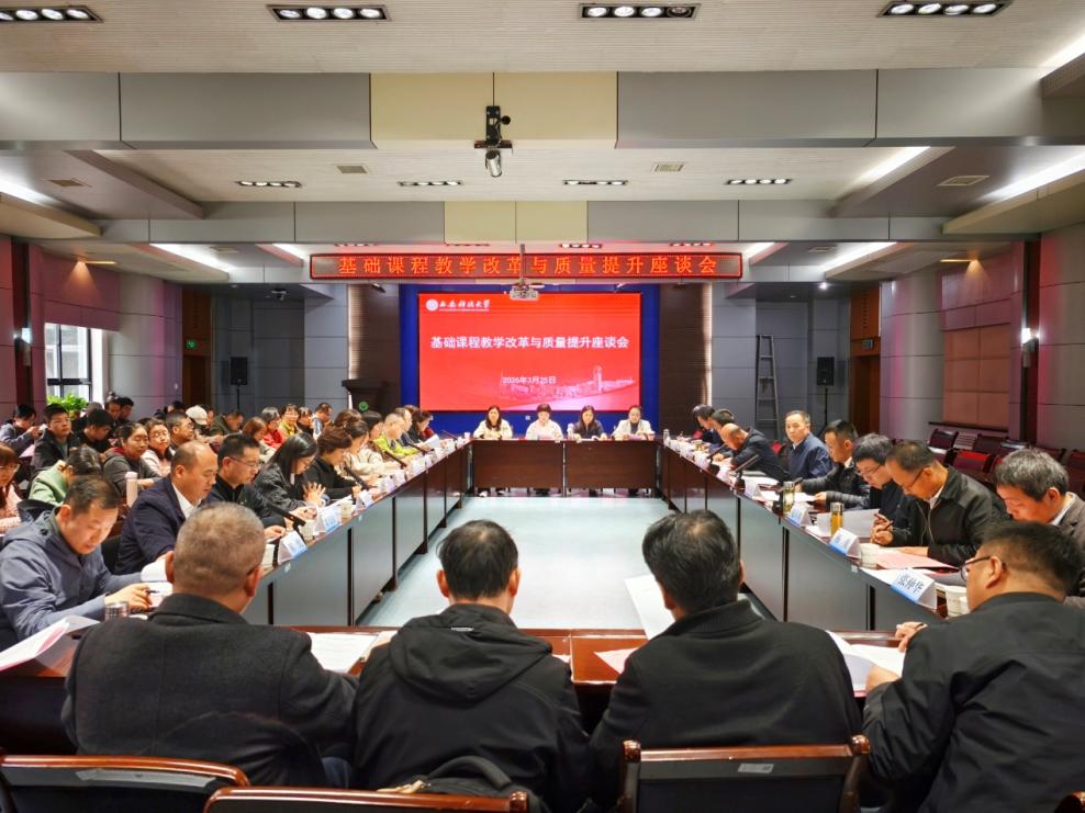 为深入贯彻落实立德树人根本任务,扎实推进基础课程教学改革,3月25日下午,“高等数学”“大学英语”课程教学改革与质量提升座谈会在骊山校园第二会议室召开。校党委副书记陈春林、副校长程卫星出席会议,教务处、学工部、教师发展中心负责人,理学院、人文与外国语学院党政班子成员,2025级高等数学、大学英语全体任课教师及辅导员参加会议。