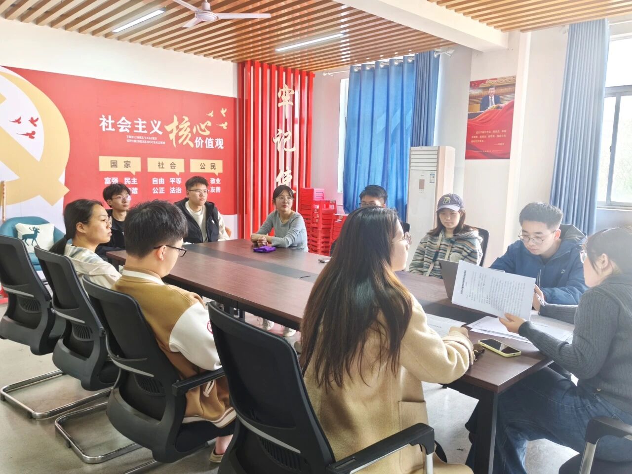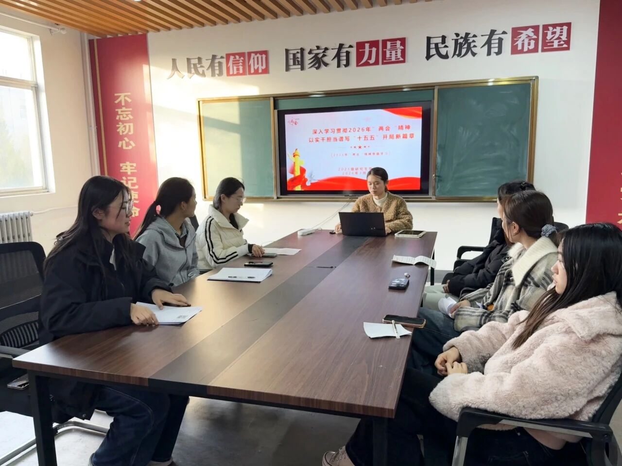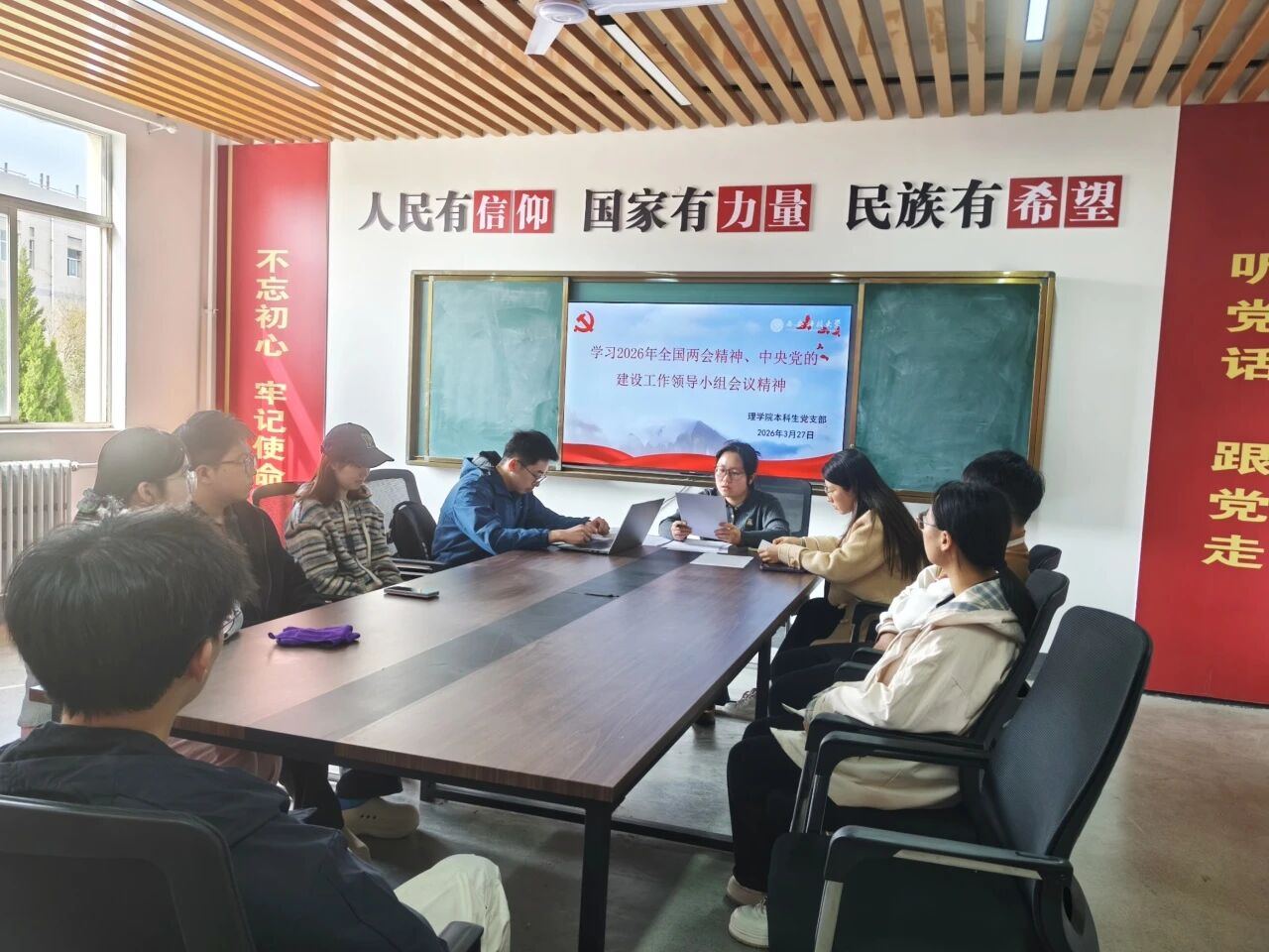 为深入学习贯彻2026年全国两会精神,引导青年学生准确把握国家发展新部署新要求,切实把思想和行动统一到党中央决策部署上来,近日,理学院各学生党支部于“一站式”学生社区针对全国两会精神展开学习。