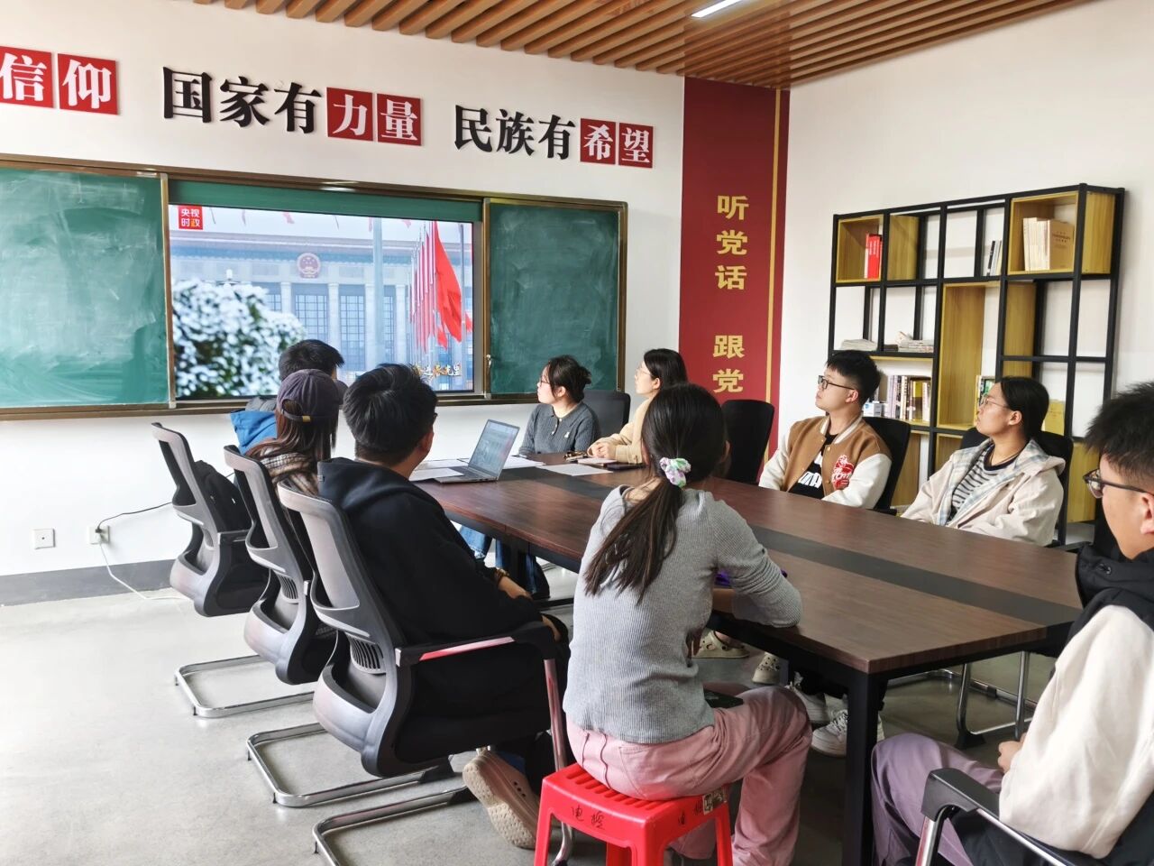 学习过程中,同学们集中观看了全国两会专题学习视频,通过影像资料直观了解会议盛况、政策亮点和代表委员建言,进一步加深对国家发展成就与未来方向的理解。观看结束后,同学们围绕“青年学子如何贯彻落实两会精神”展开交流,大家纷纷表示要以实际行动践行青年担当,将个人理想融入国家发展需要。