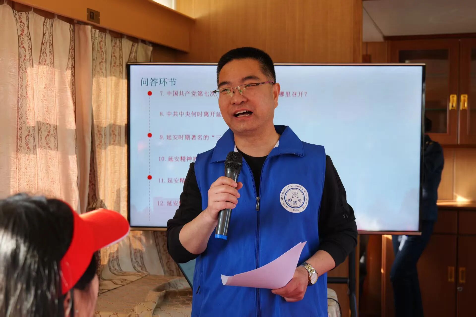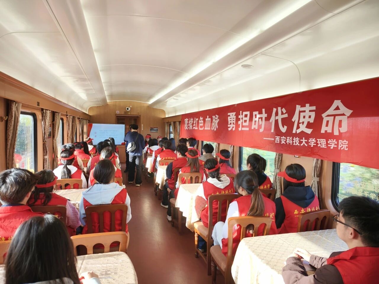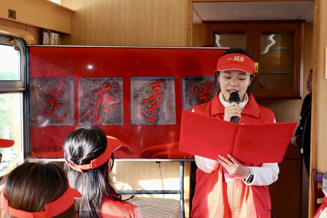 在前往延安的列车上,一场别开生面的“移动课堂”精彩开讲。研工部部长李腾龙、院党委副书记陈伟伯、团委书记侯斌刚以及马克思主义学院红言宣讲团成员,围绕延安精神的核心内涵,依次为同学们带来生动的思政微课,将革命历史与青年担当紧密结合,讲述既有历史厚度又有时代温度。