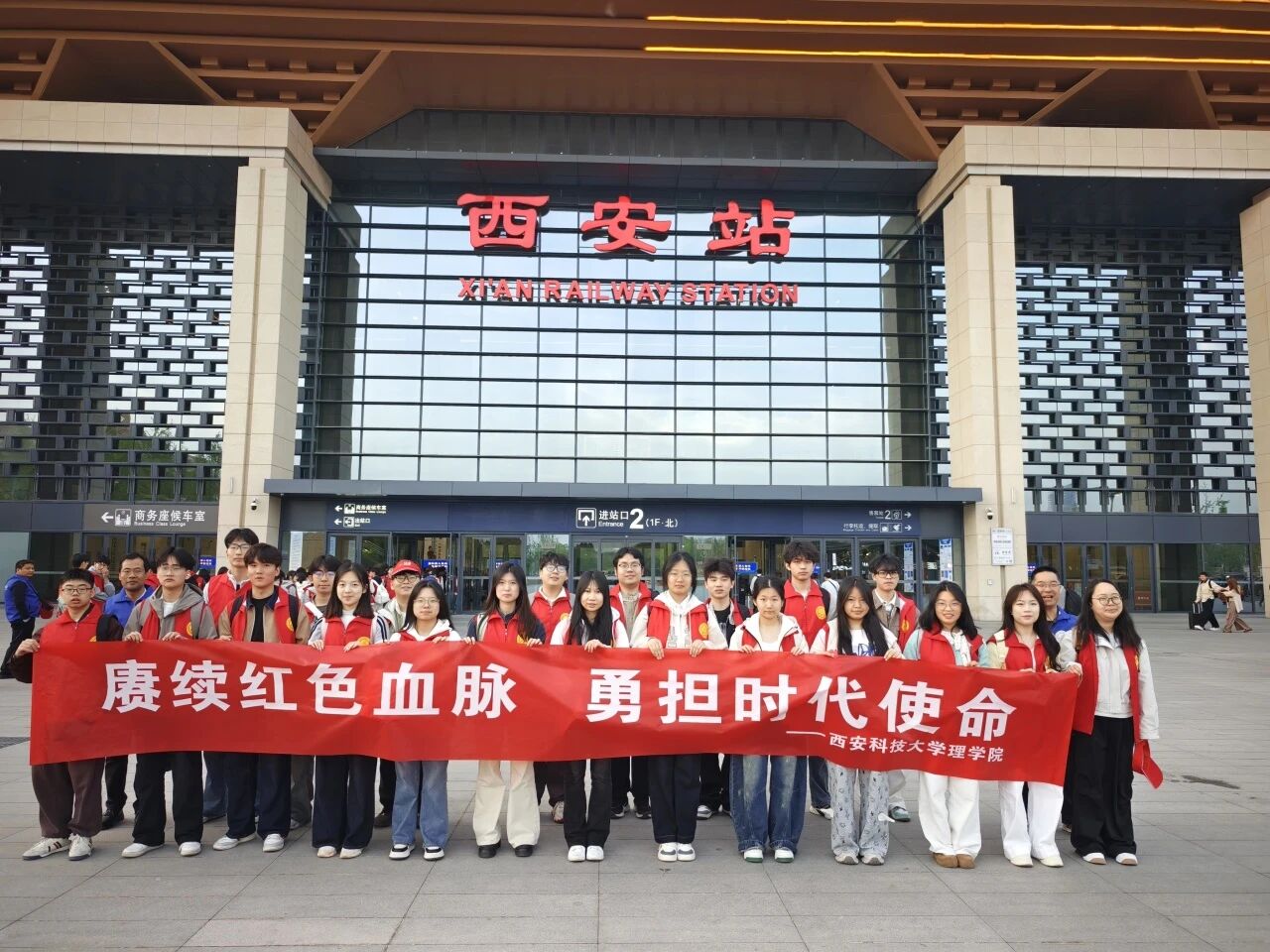 4月11日清晨,学院师生在学校综合楼门前准时集合,随后乘坐大巴前往西安火车站。在合影留念、有序检票后,大家搭乘专列火车奔赴延安。
