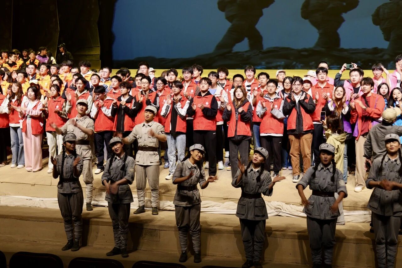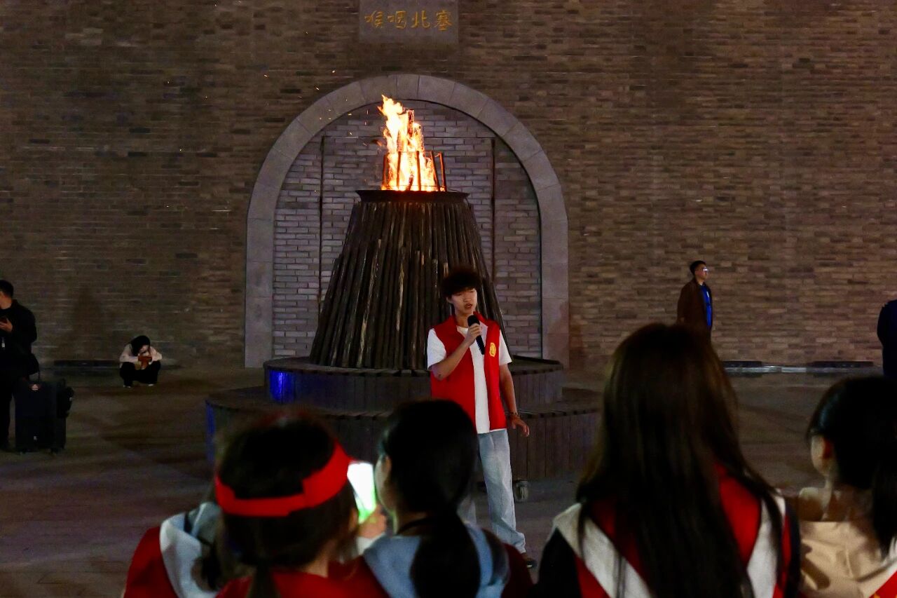 当晚,全体师生观看了大型红色历史舞台剧《延安保育院》。剧中动人的故事情节、感人的师生情谊和无私的奉献精神,令许多同学热泪盈眶,接受了一次深刻的精神洗礼。随后的篝火晚会上,熊熊火焰映红了夜空,同学们纷纷登台表演节目,现场气氛欢快而热烈。