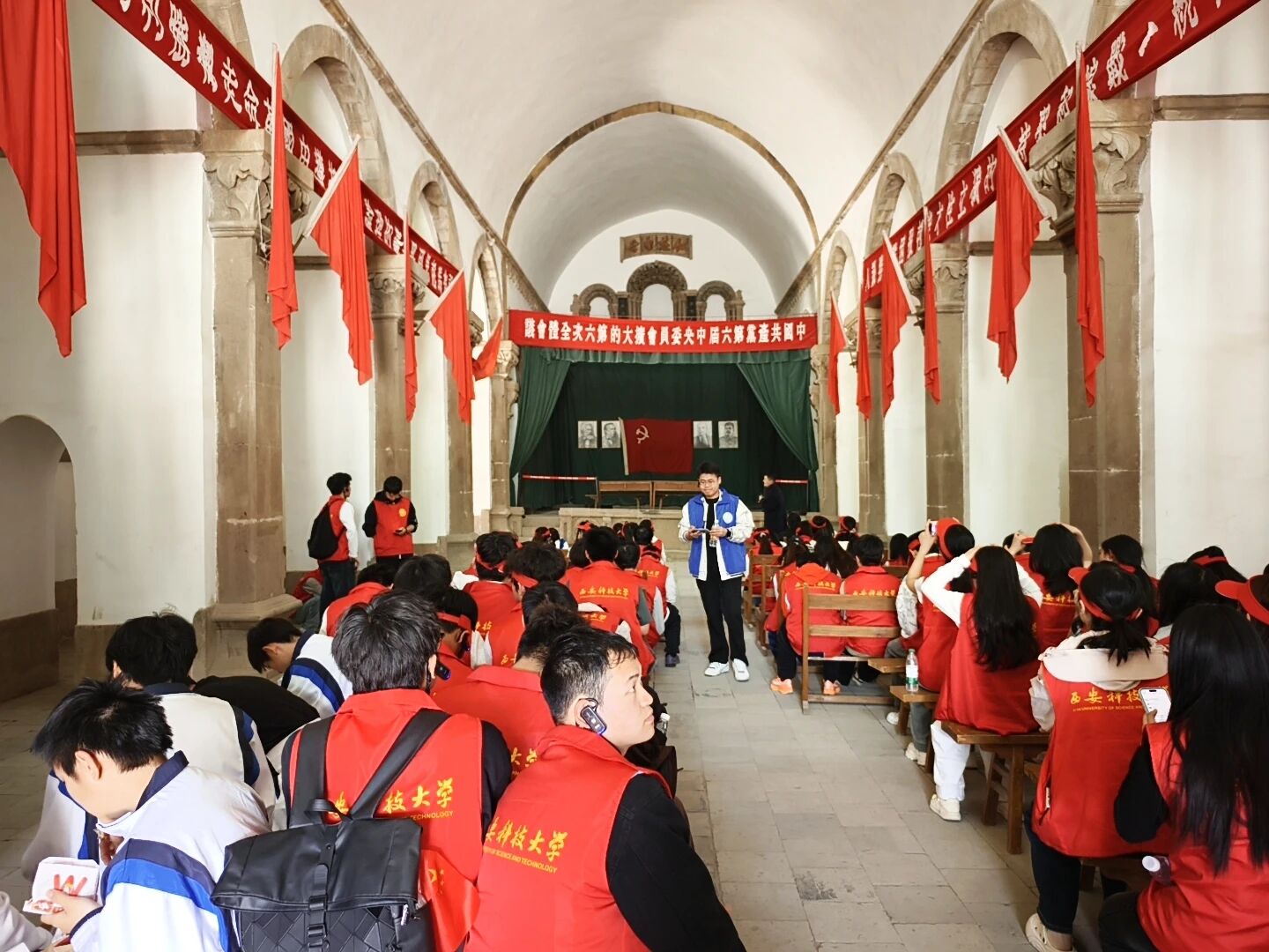 走进杨家岭革命旧址,在中央大礼堂前,大家仿佛回到了中共七大召开的庄严时刻。同学们还集体朗读了经典篇目《杨家岭的早晨》,在朗朗书声中体悟革命先辈的奋斗初心与蓬勃朝气。